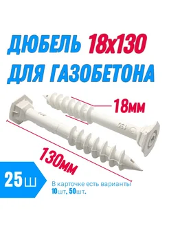 Дюбель для газобетона 12х130 винтовой под шуруп 8мм (25 шт)