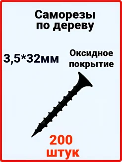 Саморезы по дереву черные 32 мм х 3,5 мм 200шт