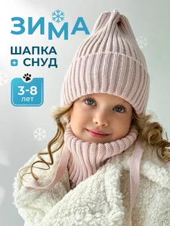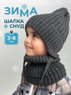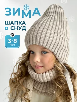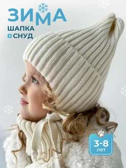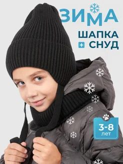 Зимняя шапка на завязках и снуд детский