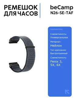 Ремешок Garmin Fenix 26 мм нейлоновый серый
