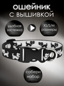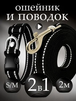 Ошейник с поводком для собак щенков и кошек светоотражающий