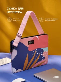 Сумка для ноутбука 13 - 14 дюймов c рисунком и ремнем