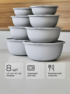 Набор мисок с крышками «Шарм» (8 шт) (серый)