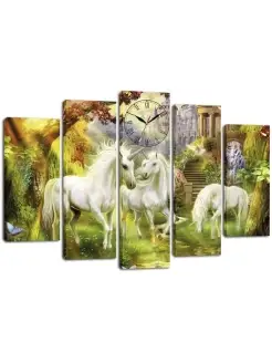 Модульная картина с часами Сказочный лес 140х80