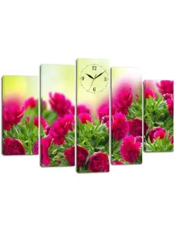 Модульная карина с часами Розовые цветы 140х80