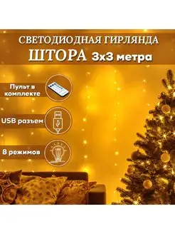 Гирлянда штора 3х3 метра новогодняя нить с пультом