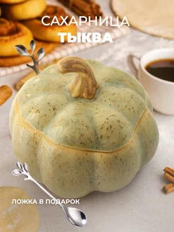 Сахарница с крышкой и ложкой керамическая тыква для меда