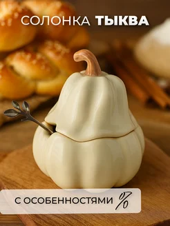 Солонка с крышкой и ложкой керамическая тыква для специй