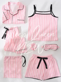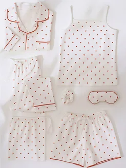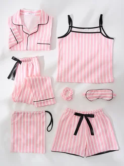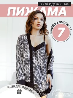 Пижама домашняя со штанами и шортами шелковая 7 в 1