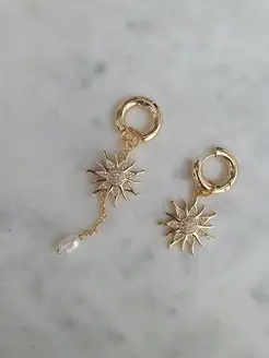 Серьги кольца золотистые бижутерия жемчуг и солнце подарок