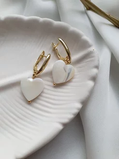 Серьги женские с подвесками сердце перламутр жемчуг
