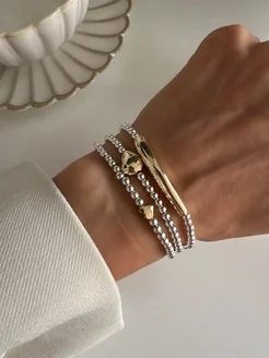 Браслет из гематита с золотистой вставкой в форме камня