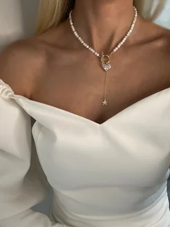Колье из натурального перламутра с подвеской сердце