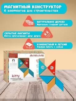 Магнитно-деревянный развивающий конструктор 6 деталей