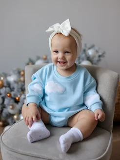 Боди платье для малышей нарядное с коротким рукавом муслин