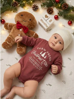 Новогодний боди лонгслив для новорожденных с длинным рукавом