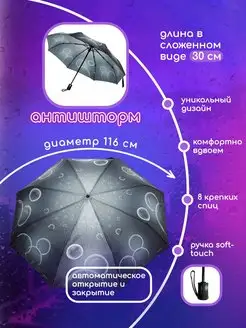 Зонт женский автомат антиветер складной-пузыри и капли