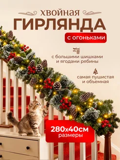 Новогодняя Хвойная гирлянда с шишками и светодиодами 2,8 м
