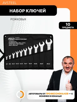 Набор ключей рожковых 6-32мм 10 предметов в сумке "AV Steel"