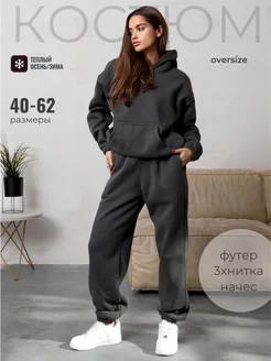 Теплый костюм с начесом оверсайз больших размеров