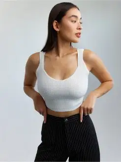 Кроп топ летний вязаный в рубчик вечерний под пиджак