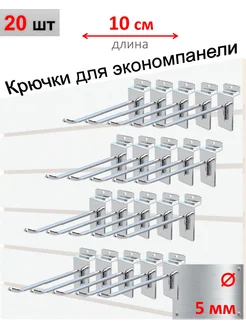 Крючки для экономпанели 5мм, хром, 20шт - 10см
