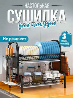 Сушилка металлическая настольная для посуды с 3 поддонами