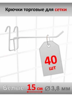 Крючки 15 см для торговой сетки металл, 40 шт, белые