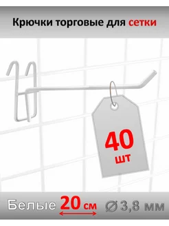 Крючки 19 см для торговой сетки металл, 40 шт, белые