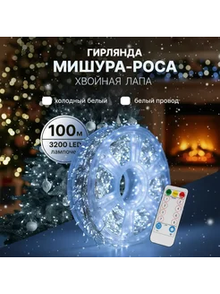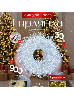 Гирлянда Новогодняя мишура белая 100 м с пультом