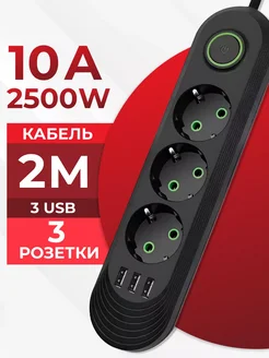 Удлинитель QL-1071U Евро 3 порта 2500W + 3 USB 5v 1А