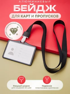 Бейдж для пропуска на шею алюминиевый двухсторонний