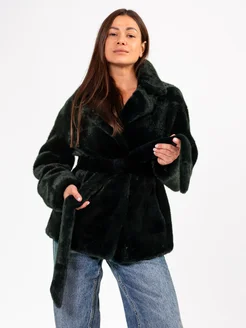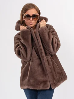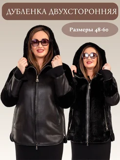 Дубленка экошуба двухсторонняя под норку с капюшоном