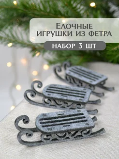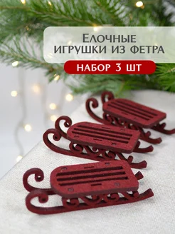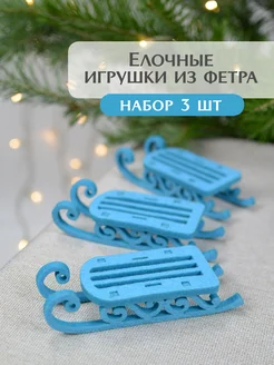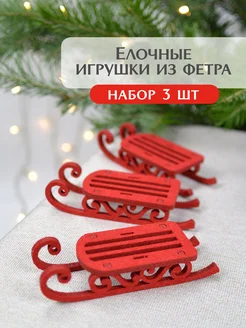 Новогодние елочные игрушки «Санки», набор 3 шт