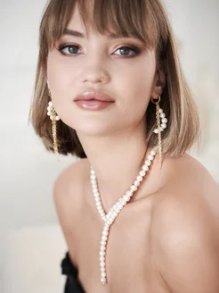 Колье жемчуг с цепями