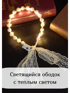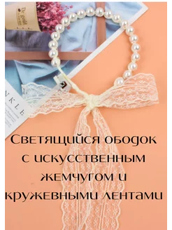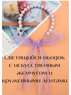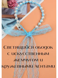 Ободок для волос светящийся с лентами и жемчугом