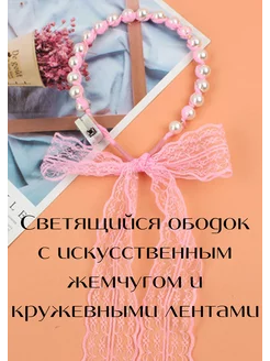 Ободок для девочки светящийся с лентами и жемчугом
