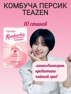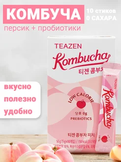 Чайный гриб комбуча с персиком и пребиотиками, 10шт