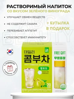 Daily комбуча со вкусом зеленого винограда + подарок Бутылка