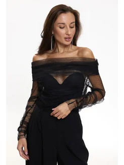 Лонгслив прозрачный нарядный блестящий