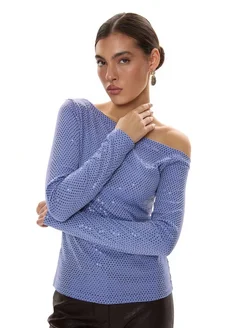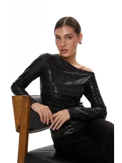 Лонгслив на одно плечо вечерний Блузка нарядная блестящая