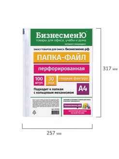 Файл перфорированный А4, 30 мкр, гладкая,100 шт