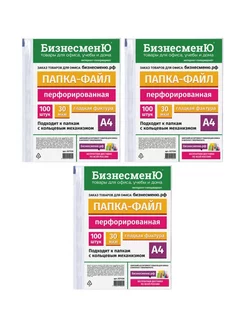 Файл перфорированный А4, 30 мкр, 3 уп по 100 шт