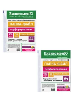 Файл перфорированный А4, 30 мкр, 2 уп по 100 шт