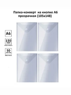 Папка-конверт на кнопке A6 прозрачная, 4 штуки