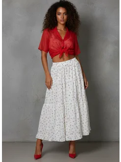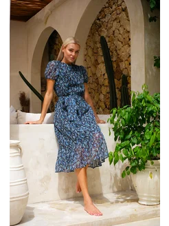 Платье шифоновое праздничное с воланом на пляж с цветами