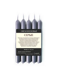 Свеча 18х2 см, серая, из пчелиного воска - 5 штук
