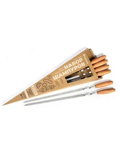 Набор шампуров НШ 6, 6 шт с деревянными ручками, длина 57 с