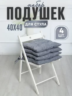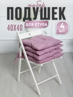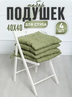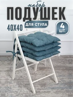 Подушка на стул квадратная с завязками 40х40 см - 4 шт