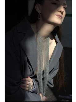 Ожерелье колье на шею длинное с цепями свисающее бижутерия